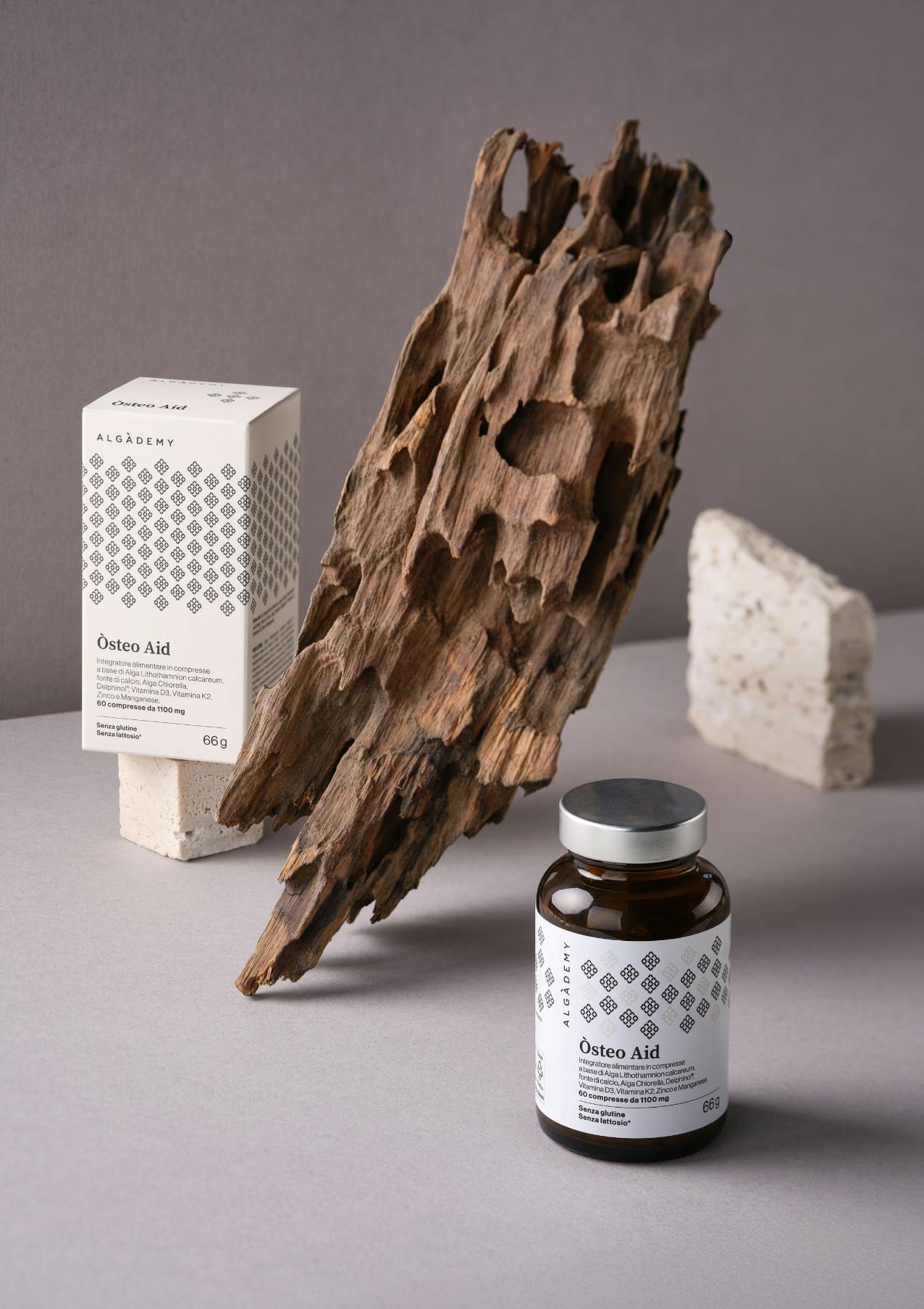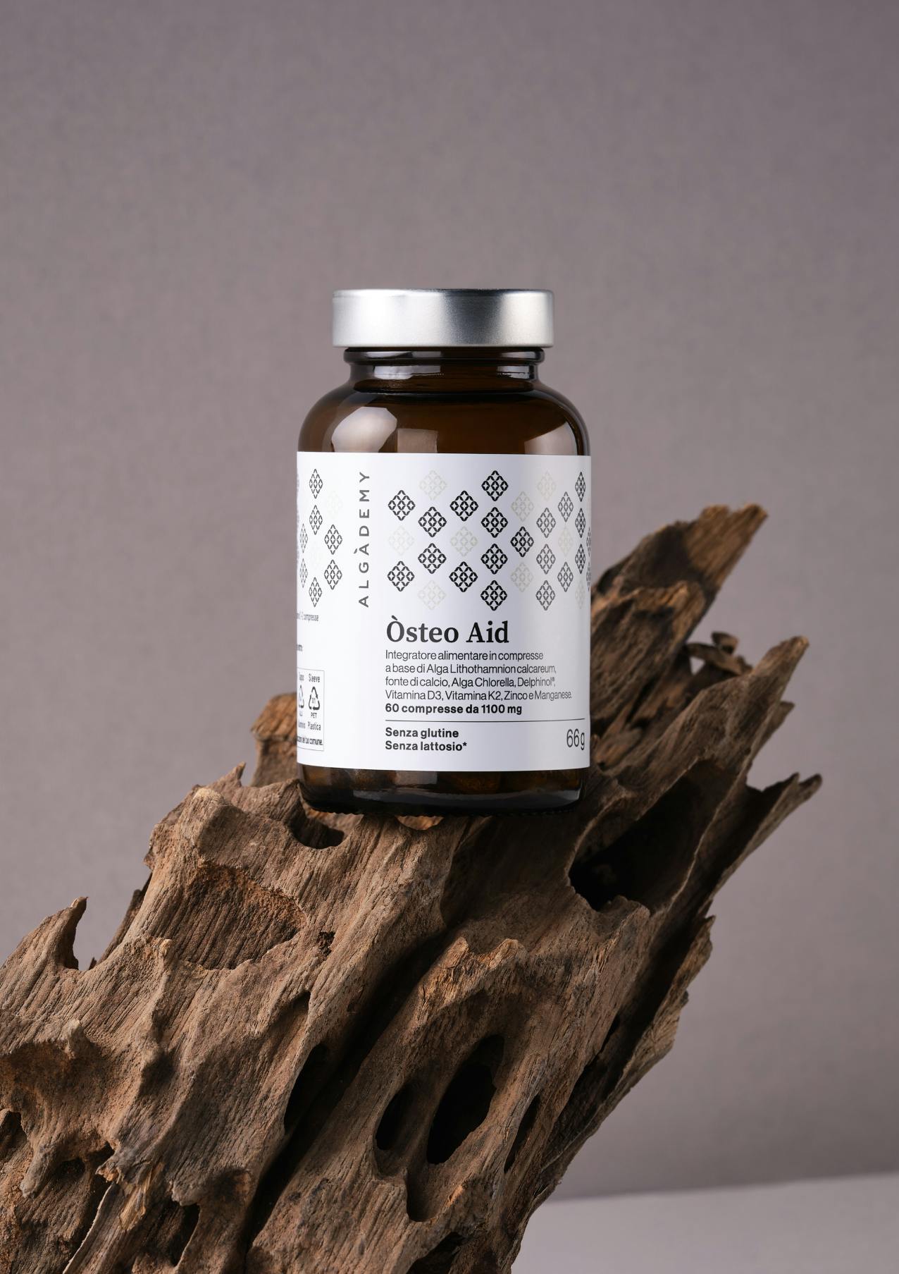 Òsteo Aid è un integratore alimentare a base di Lithothamnion calcareum fonte di calcio, Alga Chlorella, Delphinol®, Vitamina K2, Vitamina D3, Zinco e Managnese.